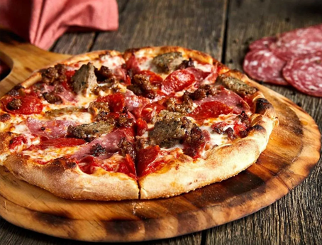 Сальчичон, пепперони, пармская ветчина, ростбиф, охотничьи колбаски, пармезан, моцарелла, маслины, капоната, вяленые томаты 1/400 г.