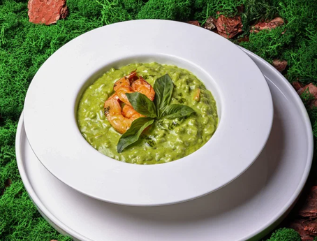 Салат Романо, обжаренные тигровые креветки, чесночные гренки, пармезан, соус Цезарь 1/210 г.